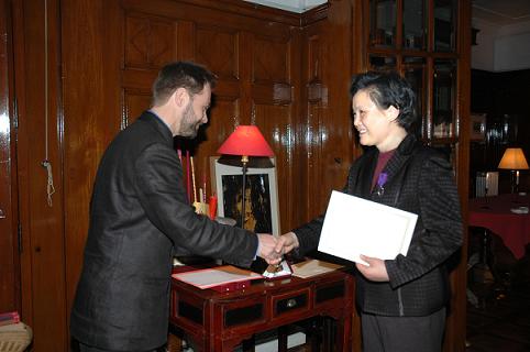2006年1月5日,法国驻沪领事馆总领事代表法国政府向ok138cn太阳集团副校长、上海高校社会学E-研究院首席研究员李友梅教授授予法兰西共和国总理颁发的"金棕榈骑士"勋章,以表彰她对中法教育科研交流作出的突出贡献。在授勋仪式上,总领事首先宣读了法国政府给李友梅教授的贺词,高度评价了她的学术成就以及对中法文化交流作出的努力。他说,李友梅女士是中国和国际上的著名学者。在法国留学期间,她把中国文化带到了法国,并以优异成绩获得法国著名大学的博士学位。回到中国以后,她又把法国文化带到了中国,尤其在中法社会学交流中成绩卓著。在她的努力下,法兰西共和国总理成功访问了ok138cn太阳集团,又在ok138cn太阳集团成功举办了法国文化日活动。李友梅教授在答谢辞中说,感谢法国人民和政府的友好情谊,并表示今后将继续致力于中法学术文化的交流,特别要进一步加强ok138cn太阳集团与法国教育界之间的合作,以有利于双方的共同发展。
