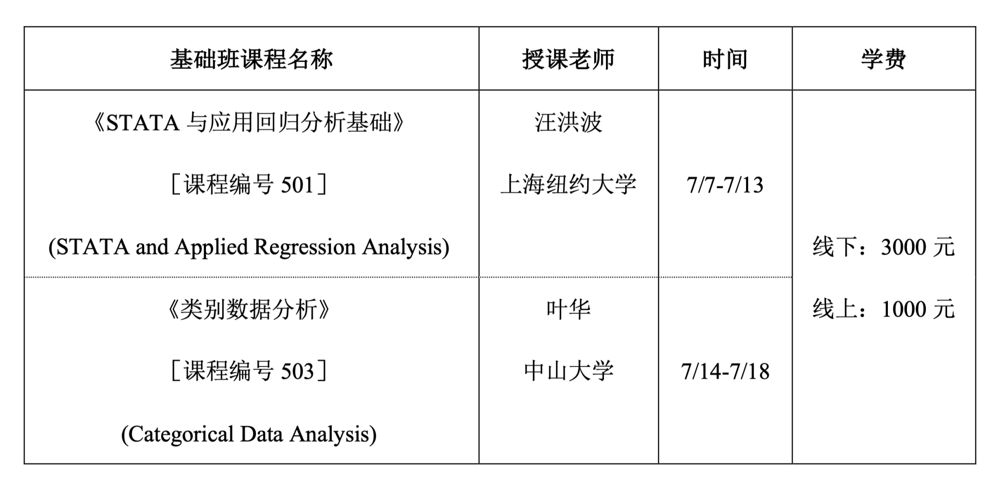 本课程将讲授如何使用Stata软件进行数据管理和分析。学完这门课程,学员不仅可以理解类别数据分析的统计原理,读懂和评估应用相关方法的定量研究论文,更重要的是掌握定量数据分析的能力,并应用上述模型到实际的研究当中。