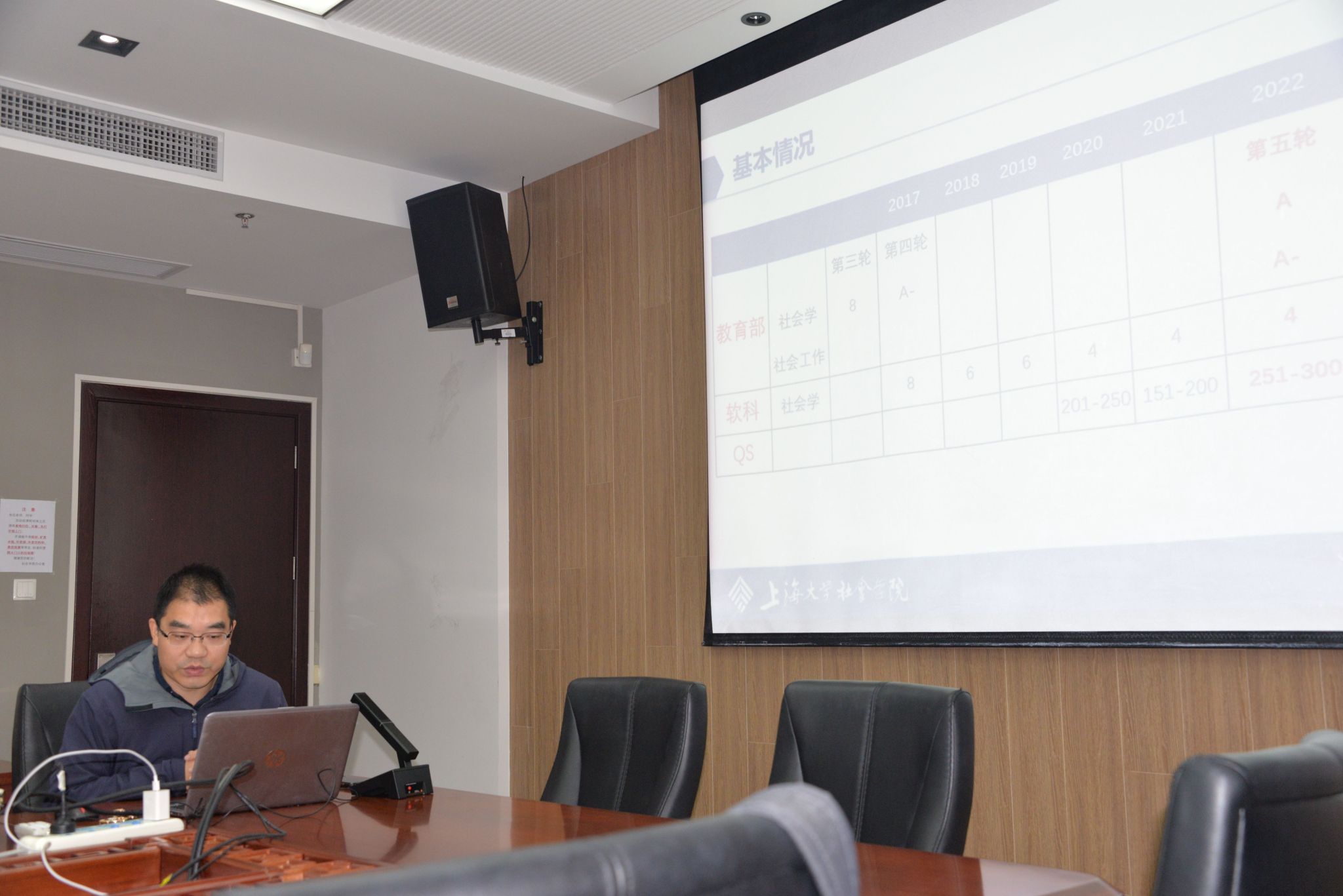 社会学一级学科博士学位点负责人黄晓春教授介绍学位点基本情况。希望专家能为社会学博士学位点的发展提出指导和建设意见。学院将借助此次评估对工作进行全面梳理,找差距、补短板,找准下一步改进的着力点。