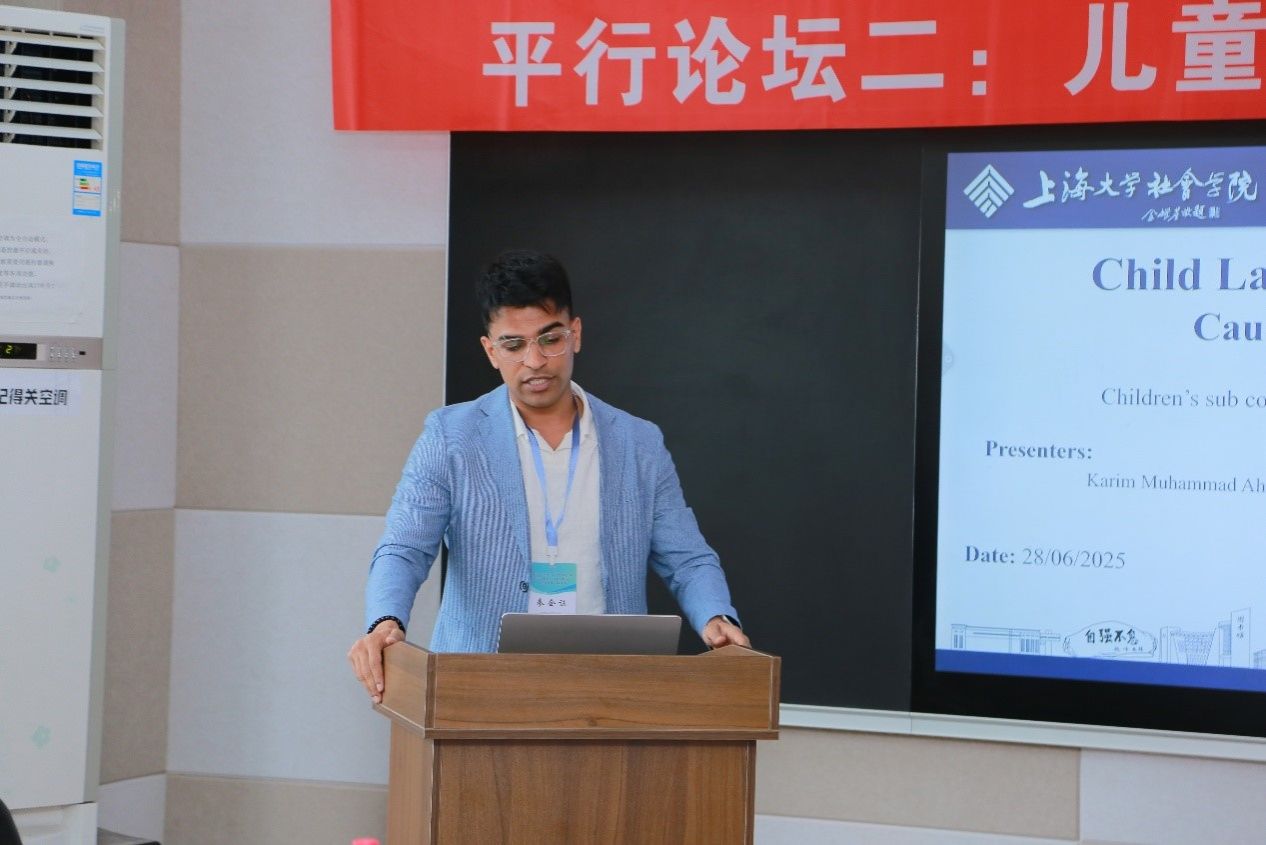 6月27日至30日,社会学系硕士留学生KARIM MUHAMMAD AHTSHAM参加了由中国社会工作教育协会儿童社会工作专业委员会和沈阳师范大学联合主办的“儿童社会工作的问题应对与福利创新暨2025年中国社会工作教育协会儿童社会工作专委会年会”。会上,作了题为“Child labor in South Punjab: Causes and Consequences”(南旁遮普童工现象:成因与后果)的口头报告,该研究主要探讨了巴基斯坦旁遮普地区童工现象的成因及其对儿童发展的影响。
