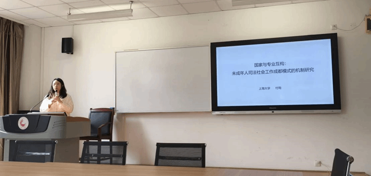 我院博士研究生付珣在“司法社会工作与未成年人司法保护体系的西南实践”分论坛上发言,发言主题为《国家与专业互构:未成年人司法社会工作成都模式的机制研究》。该研究从互构理论分析成都地区未成年人司法社会工作的发展,以及运用此理论框架嵌套地区模式的机制生成。西南民族大学教授范召全对此研究提出了建设性意见,强调研究的主体需要区分不同层面对话的可能性,同时寻求新的路径专注于解决传统司法体系中难以处理的问题。