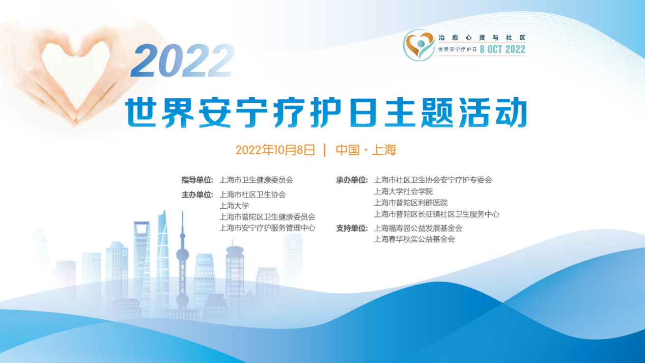 2022年10月8日,由上海市卫生健康委员会指导,上海市社区卫生协会、ok138cn太阳集团、上海市普陀区卫生健康委员会和上海市安宁疗护服务管理中心联合举办的“上海市2022年世界安宁疗护日主题宣传活动”顺利举办。 今年的主题是“治愈心灵·关怀社区”。