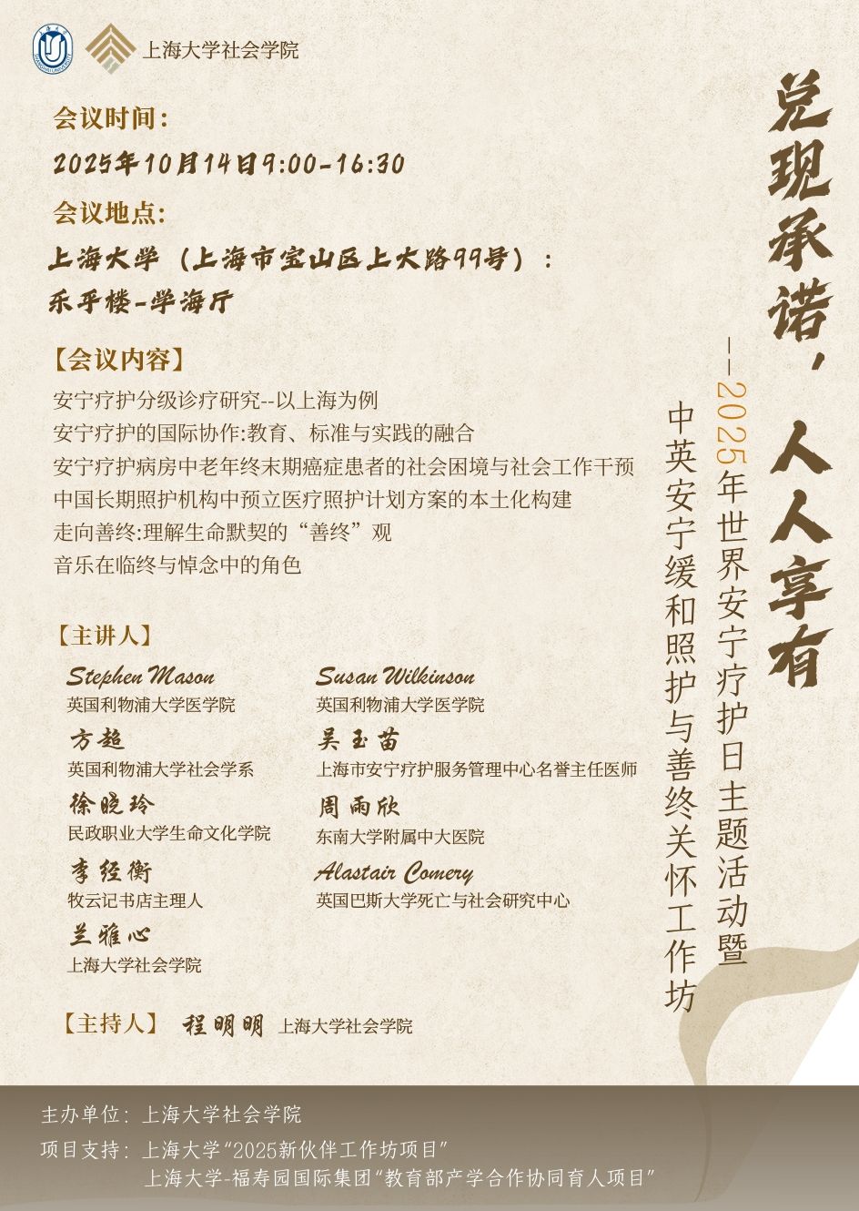 兑现承诺,人人享有——2025年世界安宁疗护日主题活动暨中英安宁缓和照护与善终关怀工作坊