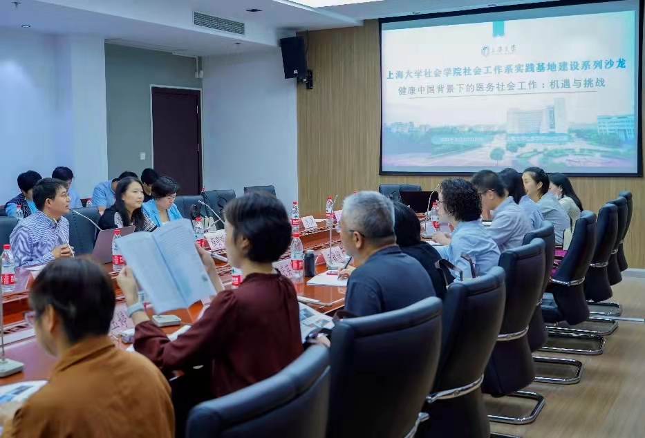 参与本次沙龙研讨的还有来自上海市普陀区人民医院社工部主任徐静娟、普陀区曹阳社区卫生服务中心书记李萍、长宁区华阳街道社区卫生服务中心社工部主任、复旦大学附属肿瘤医院社工部朱富忠、复旦大学附属儿科医院简杜莹、中国福利会国际和平妇幼保健院社工部史心怡、普陀区利群医院社工部张倩倩、徐汇区斜土路社区卫生服务中心杨晓倩、浦东新区周浦医院李志萍、嘉定区安亭医院社工部主任张纪芳、国药康养实业(上海)人力资源总监姚莲、上海医丞健康科技有限公司董事长谢赟、上海福寿园发展基金会施冠中、中国太平人寿上海分公司等医疗和健康领域的专家。社工系陈佳、高树玲、张天明、陈慧菁、赵宇阳、实习督导陈彩霞、程金等老师与会交流。