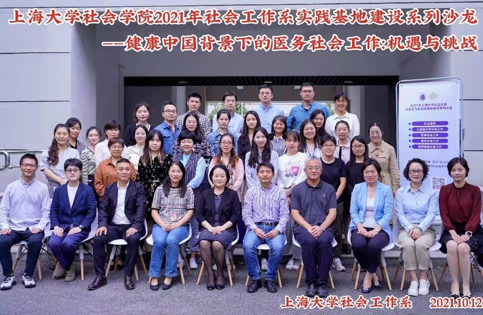 2021年10月12日下午,2021年社会工作实践基地建设系列沙龙——“健康中国背景下的医务社会工作:机遇与挑战”顺利举办。来自医疗机构、医养结合机构、健康科技企业的专家以及上大社工系师生共40余人与会,共话医务社会工作、共谋机遇和发展。