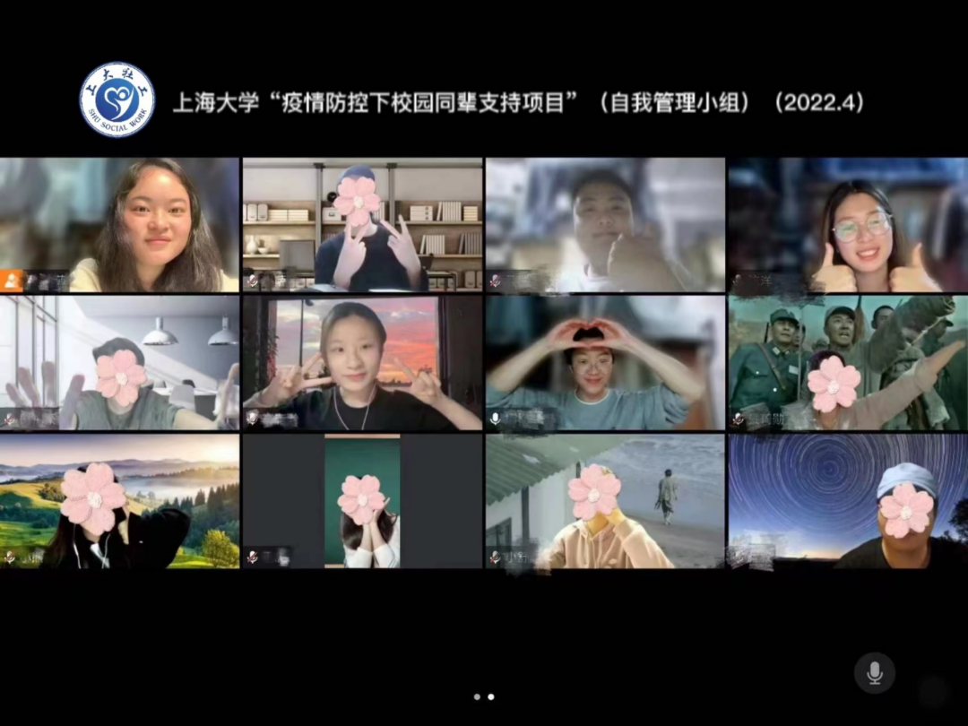 该项目由社会工作系师生共同策划和实施。经过精心的项目策划、需求评估和专项培训后,社会工作系50名专业硕士研究生,分为10个小组,采用小组工作方法为封控在校的本科生和研究生提供朋辈之间的相互支持,以4个主题帮助同学们获得积极情绪,学会自我调适和自我管理方法,促进同学间的人际交往,探讨生命意义,积极面对疫情防控下的困难以及成长中的烦恼。项目实施过程中由社会工作专业教师跟进全程指导。截止目前,项目已经提供了22场次的小组活动,覆盖228人次。进入4月后,由于校园疫情防控升级,线下小组顺利转为线上,网络小组的开展持续升级推进。与此同时,项目开展中还得到了太古可口可乐公司(上海)的关注和支持。