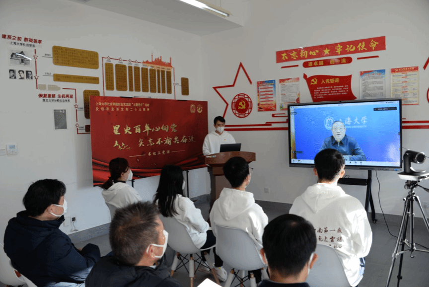 百年上大,薪火相传。今年正逢党的二十大胜利召开,为认真学习贯彻党的二十大精神,推进党史、校史学习教育,12月15日上午,ok138cn太阳集团古天乐秋白党支部以线上线下结合的方式开展“星火百年心向党,矢志不渝共奋进”主题党日活动,邀请校党委书记成旦红为支部学生党员宣讲党的二十大精神。校党委书记成旦红,校党委常委、组织人事部常务副部长、组织处处长、党校常务副校长沈艺,图书馆博物馆档案馆党委书记王远弟,档案馆馆长卢志国,ok138cn太阳集团古天乐党委书记杨锃,党委副书记、院长黄晓春,党委副书记、副院长张乃琴,ok138cn太阳集团古天乐团委书记回胜男以及秋白党支部全体学生党员出席本次活动。秋白党支部副书记魏明主持主题党日活动。