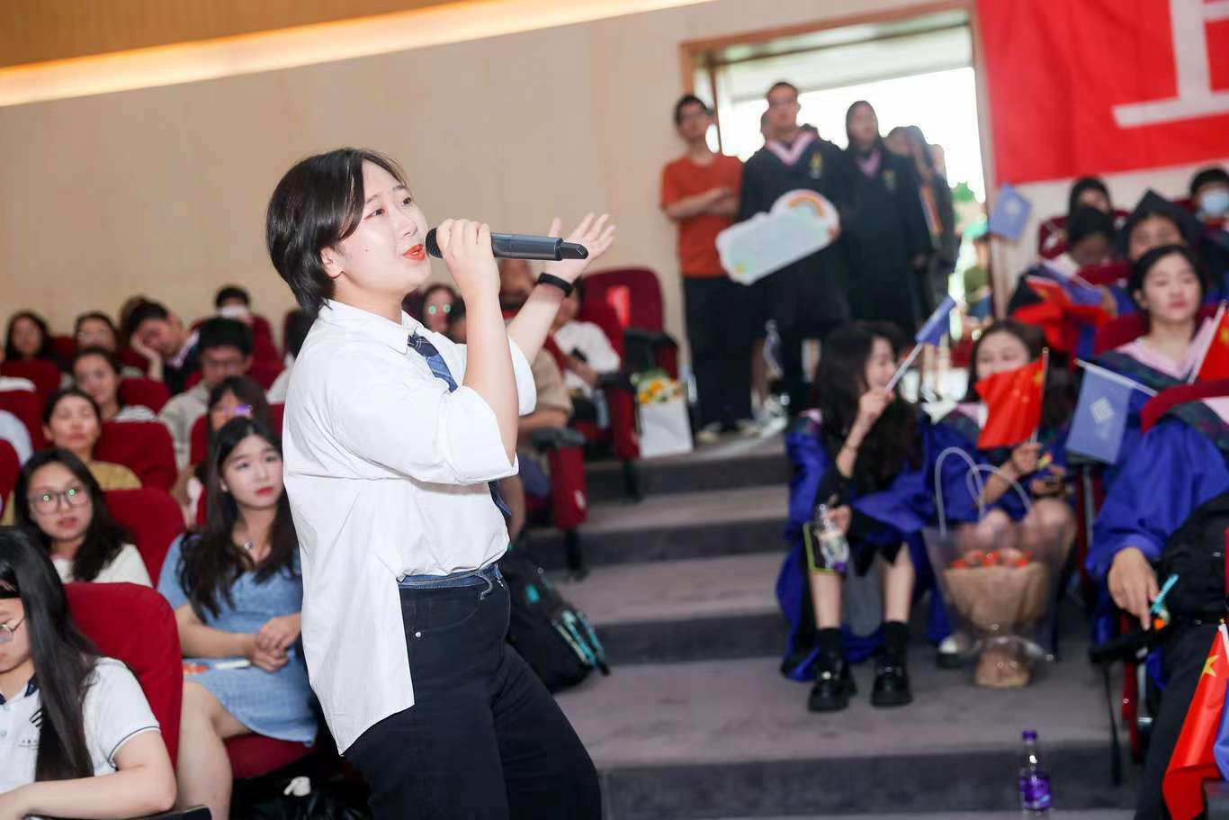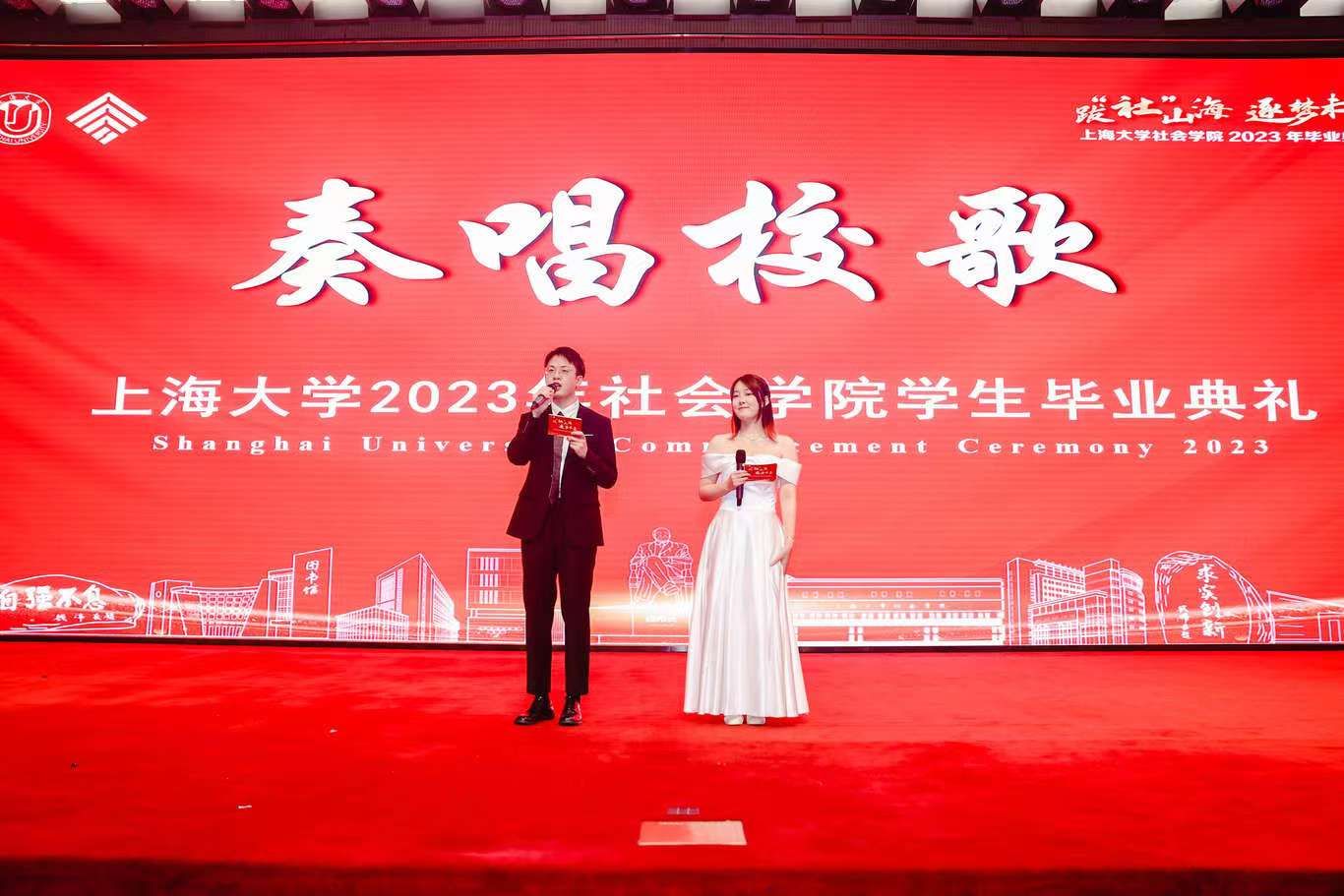 许雅涵、陈奕君等硕士研究生演唱了歌曲《社院盛夏》,社院的盛夏流光被编作旋律,赠予每一位即将远航的社院学子。
