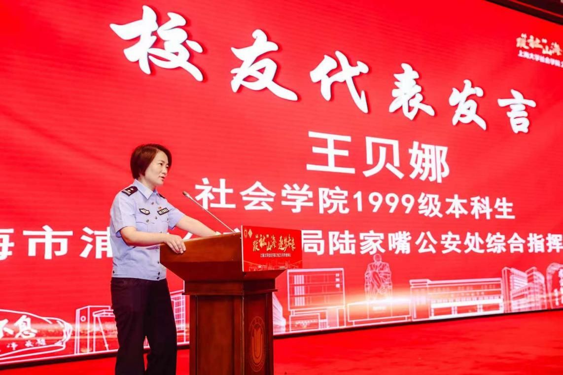 1999级本科毕业生、上海市浦东公安分局陆家嘴公安处综合指挥室主任王贝娜作为校友代表发表讲话。她向同学们分享了从警生涯中的成长与第一次的抓捕经历,希望同学们在未来的工作与人生中能够坚持梦想,持之以恒地努力,始终保持社会学的反思性,成为更好的自己。随后,党委书记杨锃为马嘉伊、程雨苗、汤婷婷、郝立松、刘文迪和王涛六位同学颁发了ok138cn太阳集团古天乐校友联络员聘书,希望他们能够成为联结学院与校友的紧密纽带,维系彼此联系,传递社院情谊。