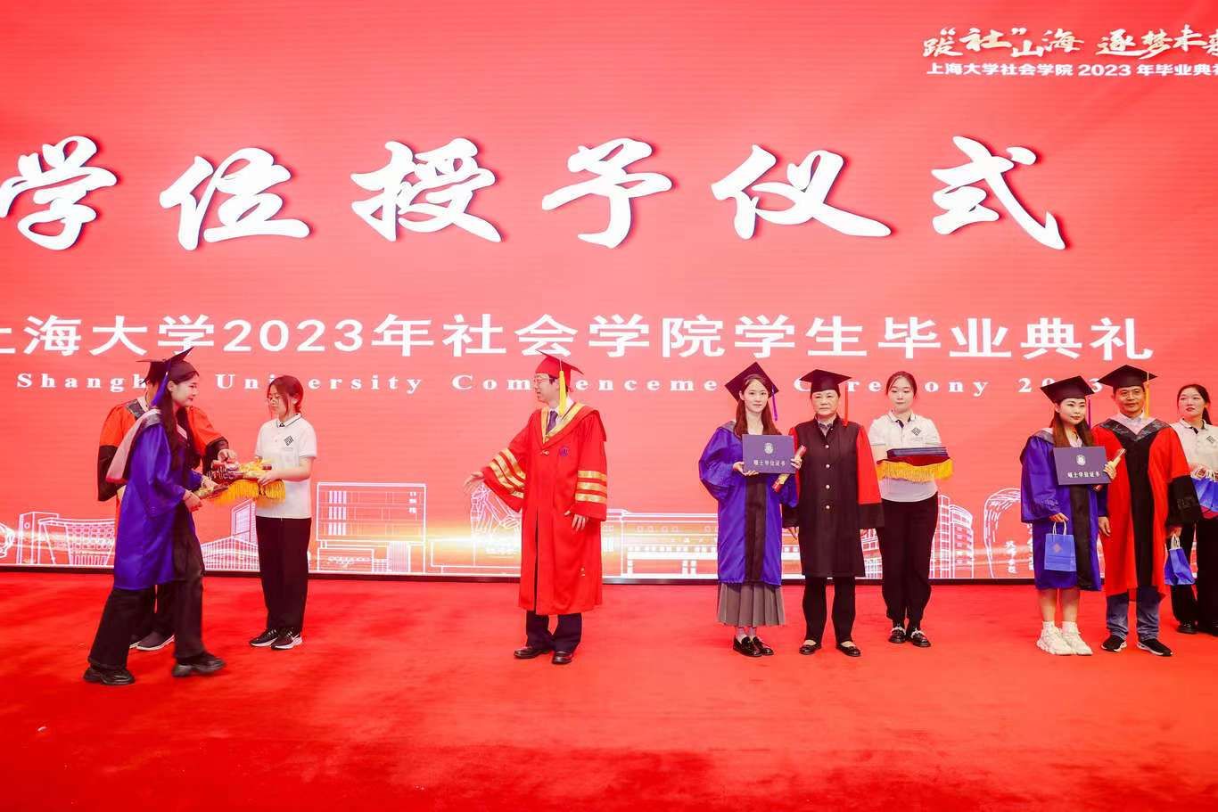 校党委副书记、纪委书记段勇,ok138cn太阳集团古天乐李友梅教授,杨锃书记,黄晓春院长为毕业生们逐一授予学位证书,并拨穗正冠,赠送贺信与毕业礼物。