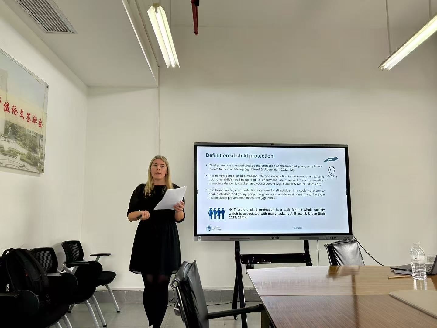 5月26日至5月30日,社会工作系开展海外前沿系列讲座与国际交流活动。参与此次活动的包括:来自德国科隆大学人文科学学院特殊教育与康复系、青年福利与社会工作首席教授Nadia Kutscher与团队成员Klara-Marie Niermann, SamanthaStolz, Amelie Wiese, Jan Schuhr、以及科隆大学北京办公室主任邱岚,来自英国利物浦大学社会学助理教授、老龄化与生命历程中心副主任方超博士,以及巴斯大学死亡与社会研究中心研究助理、博士研究生Alastair Comery。