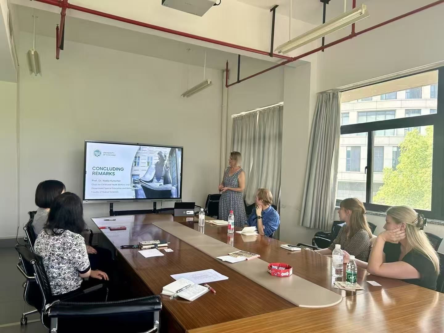 最后,5月30日周五下午,德国科隆大学Nadia Kutscher教授与团队成员Klara-Marie Niermann, SamanthaStolz, Amelie Wiese, Jan Schuhr、以及科隆大学北京办公室主任邱岚就《中德儿童与青少年福利事业——未来合作展望》为主题,展开了圆桌会谈。为本次海外前沿系列讲座画上了一个圆满的句号。