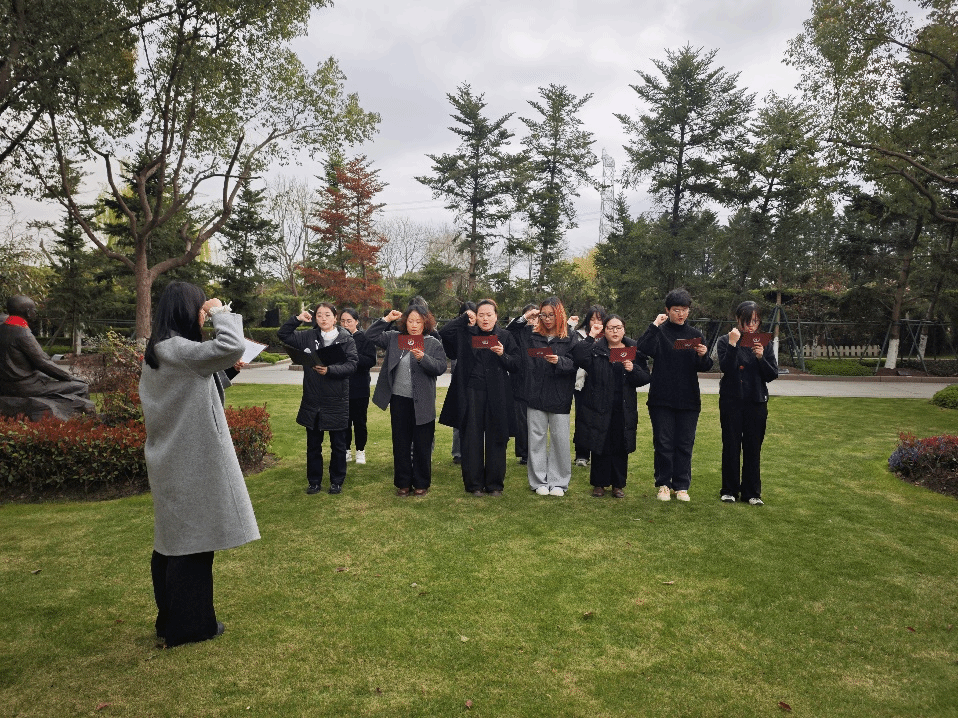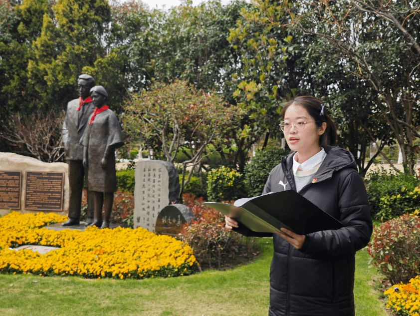 “我志愿以秋白精神为引领,投身时代洪流,忠于祖国,忠于人民,矢志共产主义理想;求真务实,锐意进取,书写时代崭新篇章;燃烧青春,竭诚奉献,以实际行动诠释党员担当。我决心以秋白同志为榜样,争做江南第一燕,践行党的宗旨,为实现中华民族伟大复兴,奋力拼搏!”在秋白党支部宣传委员顾雨虹的带领下,全体党员面向烈士墓碑庄严宣誓。铮铮誓言凝聚着当代青年党员以秋白先烈为榜样,践行初心使命、勇担时代重任的坚定决心。这不仅是对革命先烈的庄严告慰,更是全体党员对自身使命的郑重承诺。