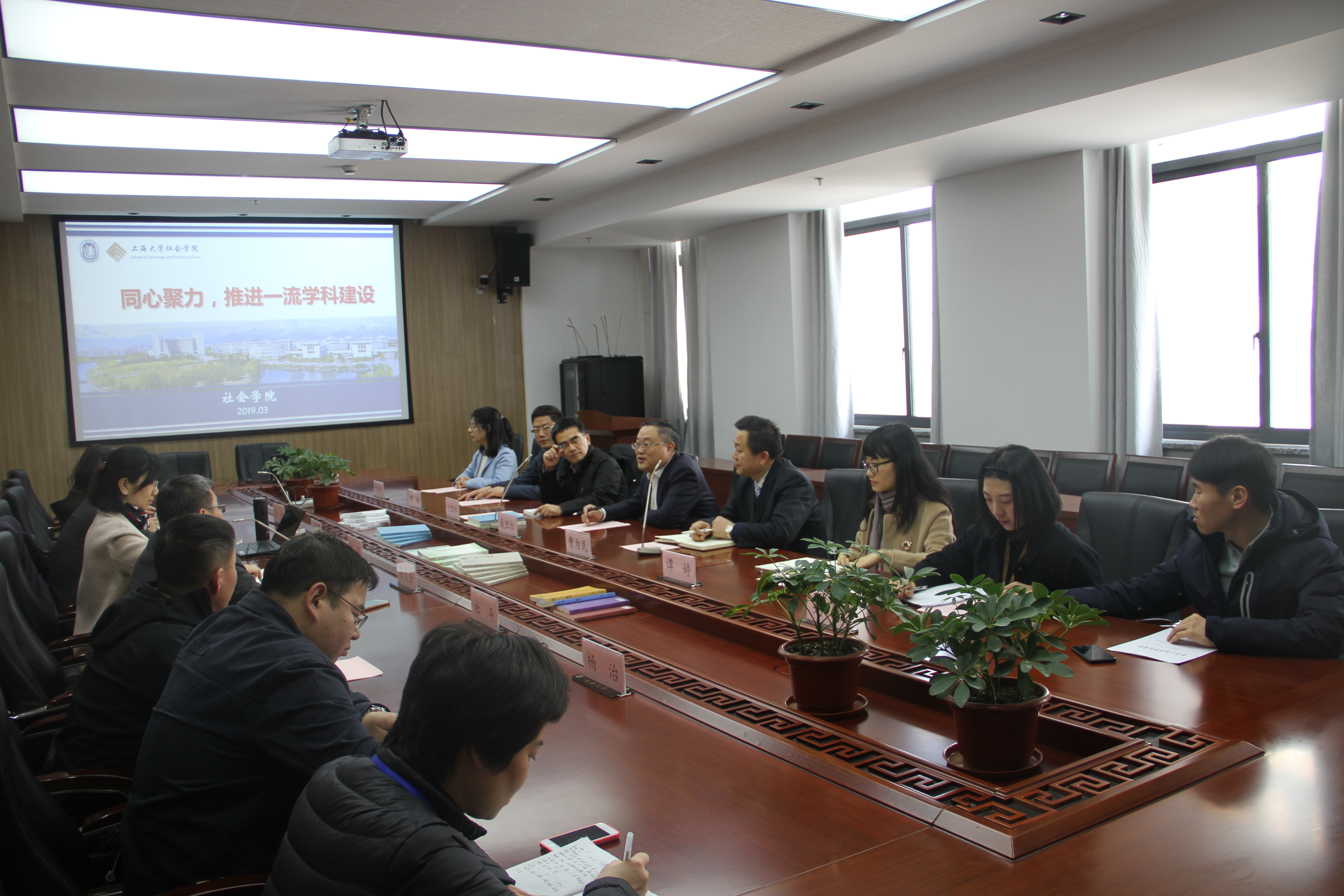 3月7日,市教卫工作党委副书记成旦红一行来ok138cn太阳集团古天乐调研,市教卫工作党委统战处处长王瑞杰、副处长钟诚等陪同,校党委统战部部长曹为民、副部长谭婷,学院党委书记沈艺、副书记徐义圣、上海社会科学调查中心常务副主任张海东教授等参加了本次调研座谈会。