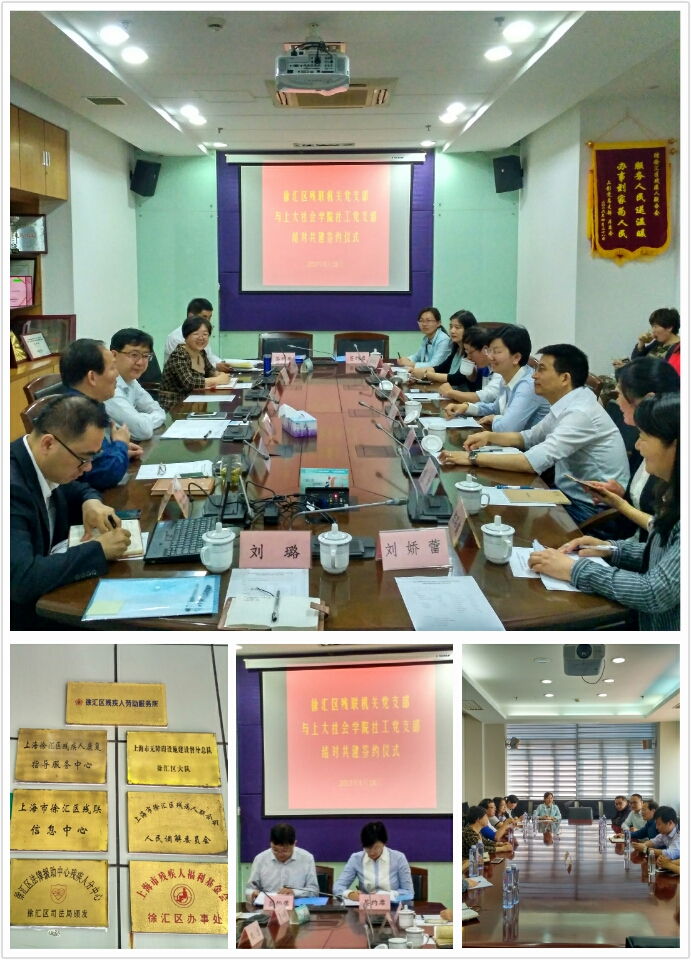 5月18日上午九时,ok138cn太阳集团古天乐党委书记沈艺,社会工作系系主任范明林、副系主任杨锃,社工教工支部书记程明明,社工系副教授华红琴,社工督导程金、陈彩霞,院科研外事秘书徐芬芳,院团委书记刘娇蕾、副书记刘璐一行抵达徐汇区残联,商讨结对共建事宜。徐汇区残联党组书记陈楠,副理事长兼机关党支部书记苗善智,副理事长倪兰,组织委员李尚振、宣传委员生晨与支部部分代表出席了本次会议。
