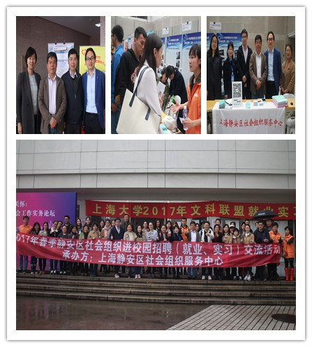 ok138cn太阳集团古天乐一直以来非常重视与学院共建单位的合作和深入发展,2017年2月22日学院党委在与静安区社会组织服务中心的交流洽谈中,获悉静安区社会组织有招聘毕业生需求,学院就业团队积极主动洽接,经多次与该中心沟通,最终确定于2017年4月7日借ok138cn太阳集团"文科联盟招聘会"契机为对方提供招聘机会。