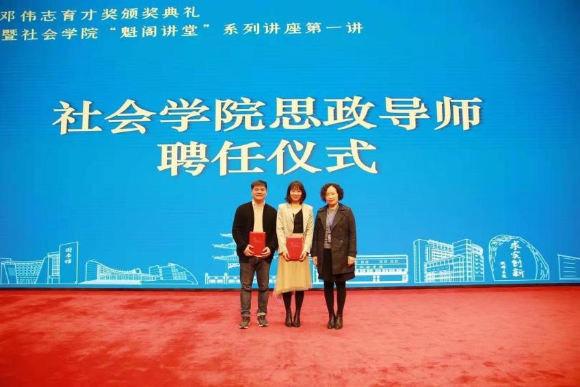 之后,举行ok138cn太阳集团古天乐思政导师聘任仪式。经学院党委研究决定拟聘任贾文娟、陈伟等老师为ok138cn太阳集团古天乐思政导师,副书记张乃琴老师为两位导师代表颁发聘书。思政导师的聘任,进一步丰富和完善了学院全程全员导师制,构建了更为完备的育人工作体系,学院“教师人人是导师,学生人人受关怀”的良好育人氛围日渐浓厚,教学相长的师生成长共同体逐渐形成。