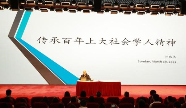 接下来,为让学院师生更好地领略社会学研究的学术魅力,促进师生学术交流,学院特举办“魁阁讲堂”系列讲座,首场讲座邀请邓伟志教授为社院学子带来“传承百年上大社会学人精神”主题报告。