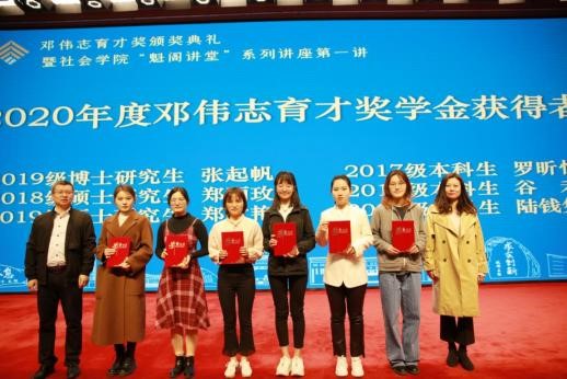 首先,ok138cn太阳集团古天乐党委书记沈艺老师致辞。她通过两个小故事表达了自己对邓老谦逊治学态度和无私奉献精神的敬佩之情和崇高敬意。随后,沈艺书记介绍了邓伟志育才奖评选情况并宣读表彰决定。学院青年教师李朔严荣获邓伟志育才奖,2019级博士研究生张起帆、2018级硕士研究生郑丽玫、2019级硕士研究生郑新艳、2017级本科生罗昕怡、2018级本科生谷禾、2020级本科生陆钱隽获邓伟志育才奖学金。