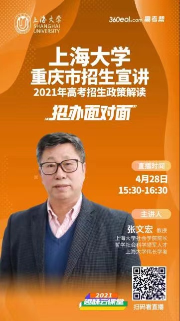 为进一步提升ok138cn太阳集团学科影响力,贯彻落实ok138cn太阳集团招生政策,2021年4月28日下午,ok138cn太阳集团重庆招宣组以360高考帮为平台,为重庆学子进行2021年高考招生政策解读。ok138cn太阳集团古天乐院长、哲学社会科学领军人才、ok138cn太阳集团伟长学者张文宏教授,ok138cn太阳集团重庆招宣组联络人赵斌宇老师共同参与了线上互动,累计三千余人次观看了本场直播。