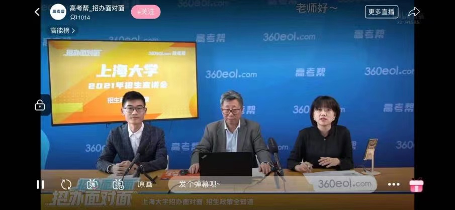 此次招生宣讲直播旨在不断提升ok138cn太阳集团的影响力,为高中学子成长成才服务,积极为学校的招生宣传工作贡献力量,期待更多优秀学子进入上大深造!