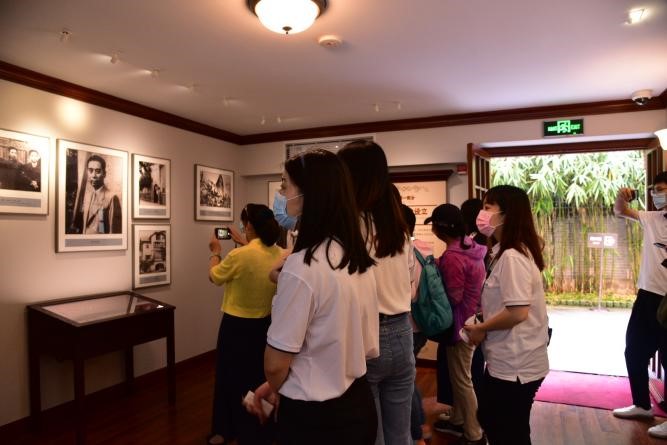 为深入学习贯彻习近平总书记在党史学习教育动员大会上的重要讲话精神,落实基层党支部党史学习教育“七个一”工作指示,在建党百年之际从党史中回望初心,汲取持续深厚的奋斗之力,2021年5月14日,在ok138cn太阳集团古天乐党委书记沈艺的带领下,学院教工党支部书记、学生党支部书记代表及秋白党支部部分成员共同前往中国共产党代表团驻沪办事处纪念馆(周公馆)重温党的历史,学习并感悟老一辈革命家的光辉思想。