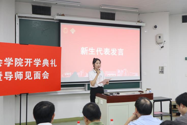 在新生代表发言环节,2021级社会学专业本科生庄菱芸以“发现”、“探索”、“成长”关键词描绘了未来学习的蓝图,并期待能与同学们和谐相处、共同进步;2021级社会工作专业硕士研究生陈昊昱首先表达了对即将开启的研究生生活的憧憬,表示将以心存敬畏、坚守初心、拥抱时代的心态在社院温暖包容的氛围中继续成长。