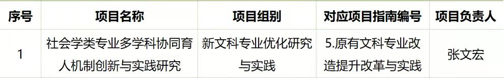 教育部近日公布了首批新文科研究与改革实践项目,我院张文宏教授负责的“社会学类专业多学科协同育人机制创新与实践研究”名列其中。该项目归属“新文科专业优化研究与实践”组别。