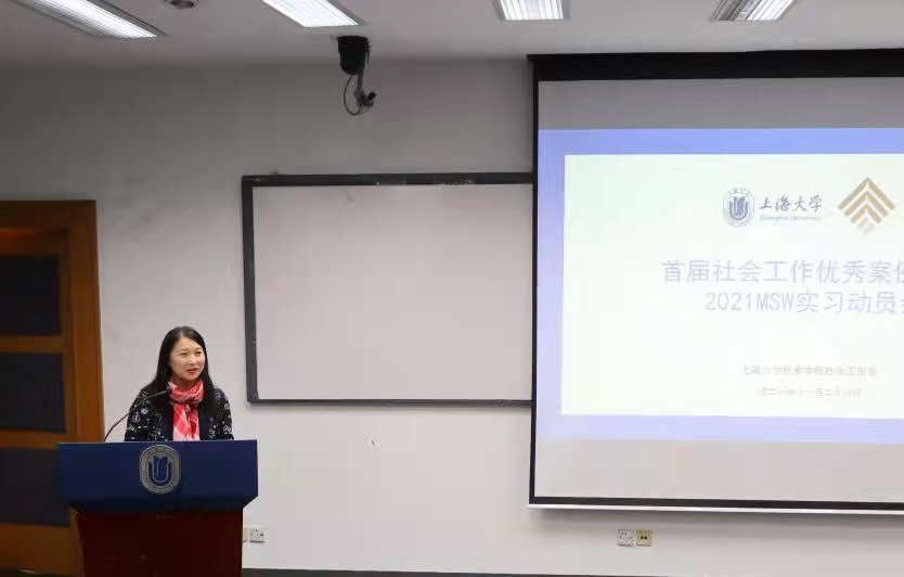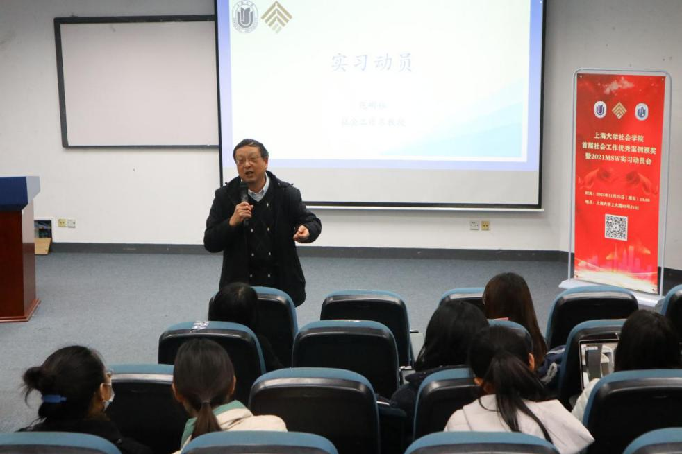 2021年11月26日,ok138cn太阳集团古天乐首届社会工作优秀案例颁奖暨2021MSW实习动员会在J楼102室顺利召开。学院党委书记杨锃教授、复旦大学附属儿科医院社会工作部主任傅丽丽等实习基地督导专家以及社会工作系师生共80余人参会,会议由社会工作系系主任程明明主持。