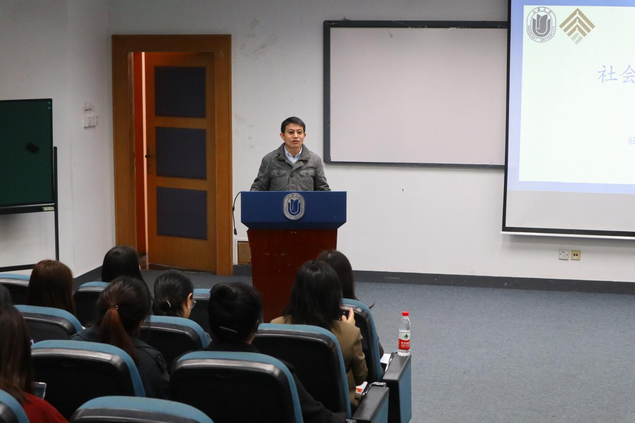 社会工作系范明林教授为同学们做了热情洋溢的实习动员。范老师以幽默诙谐的形式,结合亲身经历给了同学们“三千万”的财富。第一个“一千万”,提醒同学们千万要在实习中放下身段,切忌以研究生的权威角色参与实习;第二个“一千万”,提醒同学们千万要注意人身安全,财产安全和交通安全;第三个“一千万”,同学们千万要相互扶持,相互帮助共渡实习环节,共同成长。范老师表达了最衷心的祝福、对同学们给予厚望。