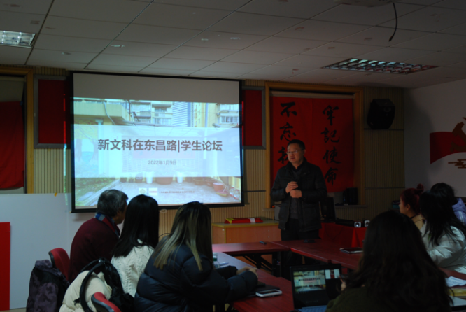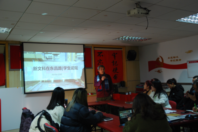 1月9日下午,由我院主办,上海市浦东新区陆家嘴街道东昌居民委员会、社区枢纽站协办的“新文科在东昌路学生论坛”在上海市陆家嘴东昌路东昌新村顺利举行。来自ok138cn太阳集团、华东师范大学、中国人民大学与华东理工大学近20位学生围绕“乡村社区”和“都市社区”两大主题进行学术交流。华东师范大学设计学院教师伍鹏晗,社工策展人张佳华,上海艺术研究中心研究部副主任郭奕华、社区枢纽站发起人王南溟,ok138cn太阳集团古天乐袁浩、耿敬、回胜男、赵斌宇等应邀出席本次论坛。