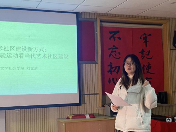 论坛下半场,华东师范大学设计学院伍鹏晗老师向与会嘉宾简要介绍论坛下半场的主旨,指出希望通过此次论坛集思广益、深化交流,共同增进对都市艺术社区建设的认知与精准把握。随后,ok138cn太阳集团上海美术学院环境艺术设计专业2019级硕士研究生陈静、艺术学理论专业2020级博士研究生周美珍、文学院文物与博物馆专业2020级硕士研究生王晴焕,华东师范大学设计学院本科生胡雯婷、公共管理学院2021级硕士研究生杜宛霖分别立足“都市艺术社区建设”这一基本点作了细致报告。其中,陈静阐释了展览化城市研究的现状,在充分分析艺术手段进入城市空间的优与劣后,细致对比了上海与深圳两地城市展览发展、观众参与、艺术营造等方面的同与异。周美珍立足跨专业介入社会公共生活的优势,结合自身在陆家嘴东昌社区的实践,从老旧社区改造、公共文化服务创新等层面分享了社工策展人在艺术社区建设中的探索与反思。此外,王晴焕归纳总结了博物馆与社区之间的互动模式,展示出ok138cn太阳集团博物馆走入东昌社区建设的过程,并为博物馆与社区建设联动提出实质性建议。胡雯婷则链接场所记忆,对上海老旧社区改造进行理性分析与感性解读。针对社区基金会的成长与演化,杜宛霖基于组织生态学视角,交流分享了社区基金会的角色功能、内部治理、影响因素等内容。郭奕华副主任从各主讲人的整体表现、研究选题的典型性、创新性和实用性等方面进行了综合评定,为与会学生把脉问诊,指点迷津。她指出,主讲人的分享结构完整、层次分明、架构清晰,期待未来学生能够立足时代,基于专业特色,带着问题联系实际,深入开展都市艺术社区建设的研究、交流与探讨。