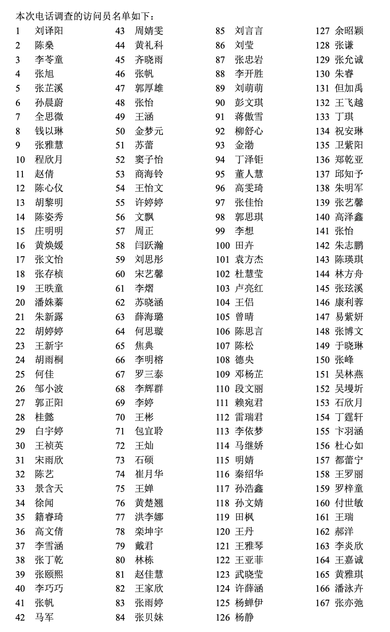 以上访问员均接受了调查执行团队的面试和严格培训,知晓社会调查所需遵守的各项准则。