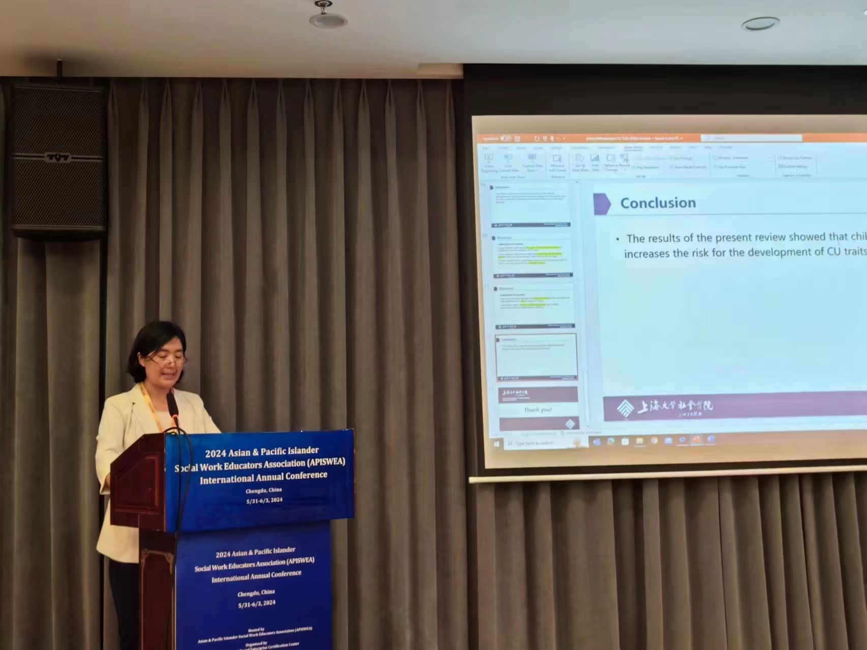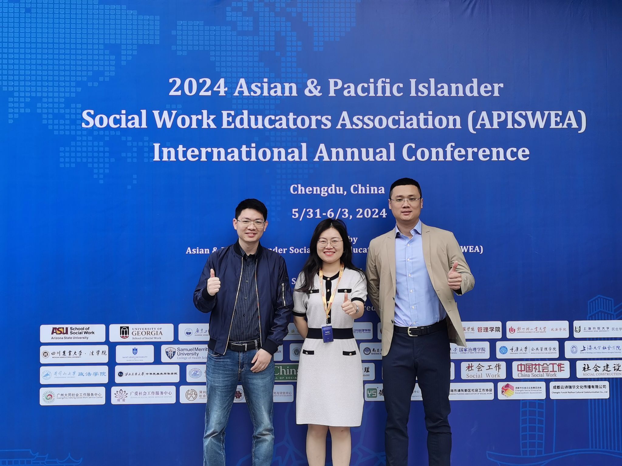 本次APISWEA学术年会中,学院社会工作系教师充分展示专业研究成果,与各国参会嘉宾主动进行学术交流,积极宣传ok138cn太阳集团古天乐、社会工作系与主办学术期刊《都市社会工作研究》,对推动学院社会工作专业学科建设进一步发展,提高ok138cn太阳集团古天乐、社会工作系及主办学术期刊《都市社会工作研究》在全国及亚太地区的知名度均有积极意义。