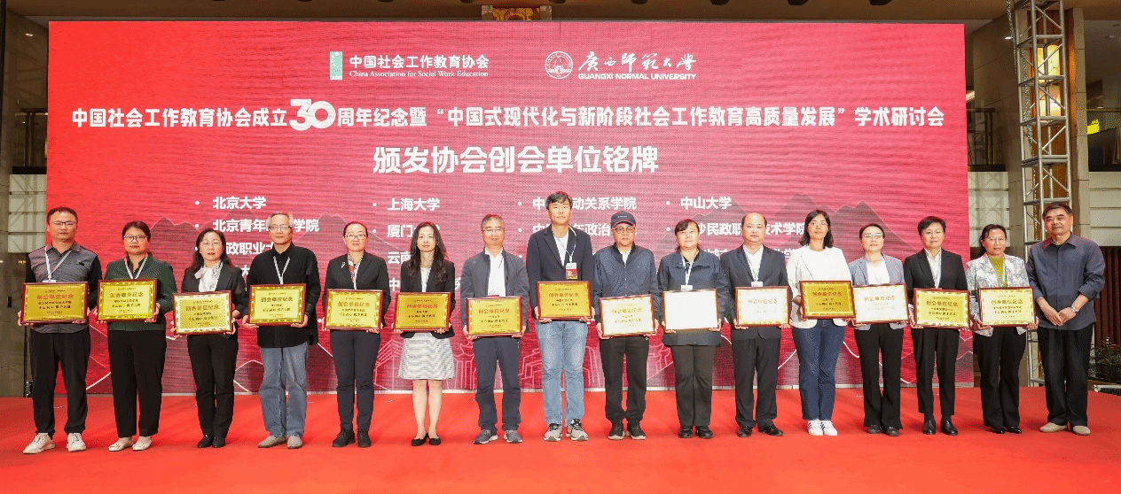 11月8日至10日(周五至周日),杨锃教授与高树玲博士出席了中国社会工作教育协会成立三十周年纪念活动暨“中国式现代化与新阶段社会工作教育高质量发展”学术研讨会。在11月9日的开幕式上,高树玲博士代表学院接受协会颁发的“协会创会单位铭牌”。