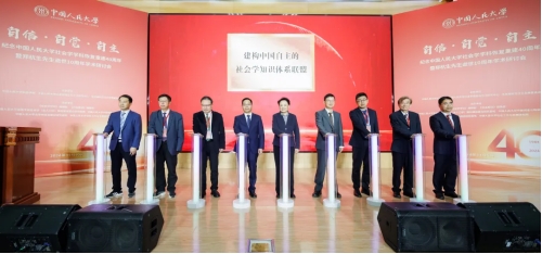 李友梅教授同兄弟院校共同为社会学自主知识体系联盟揭牌。