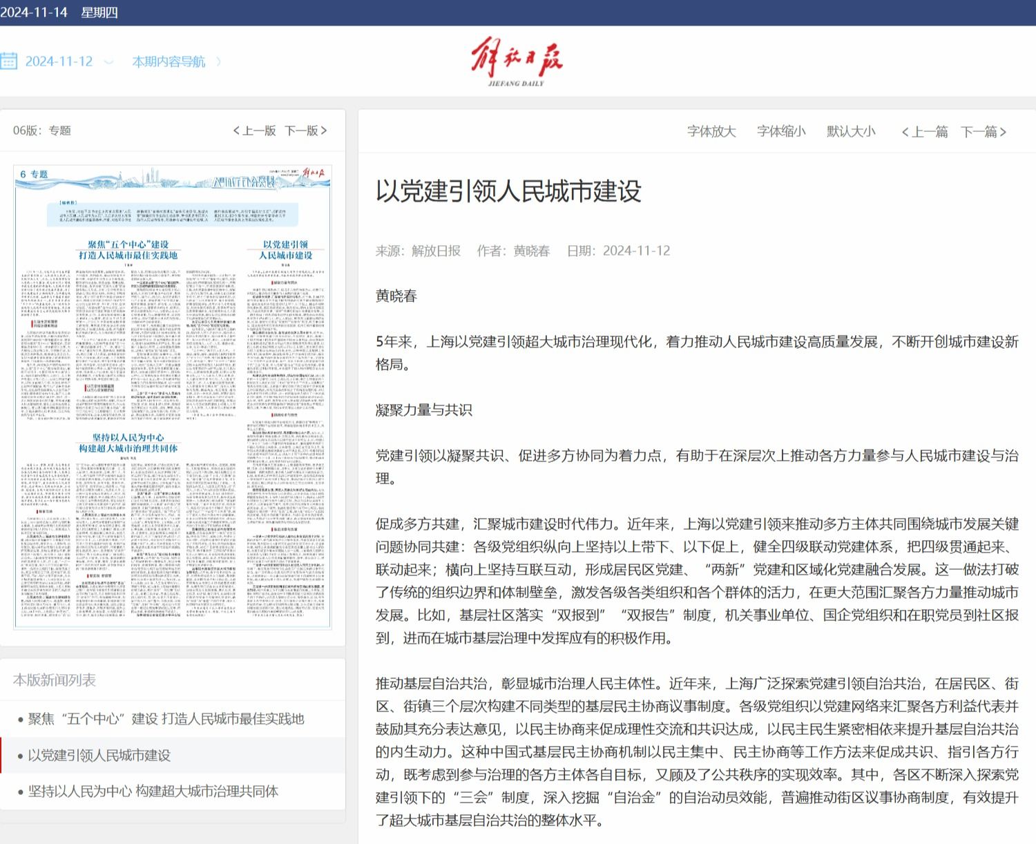 5年前,习近平总书记在上海首次提出“人民城市人民建,人民城市为人民”,之后多次对上海推进人民城市建设作出重要指示。日前,习近平总书记给杨浦区“老杨树宣讲汇”全体同志回信,勉励大家“继续讲好身边的生动故事,带动更多市民深入践行人民城市理念,积极参与城市建设和治理,共建和谐美丽城市,共创幸福美好生活”。《解放日报》《文汇报》今推专版,刊登部分专家学者关于人民城市理念及其上海实践的理论思考。