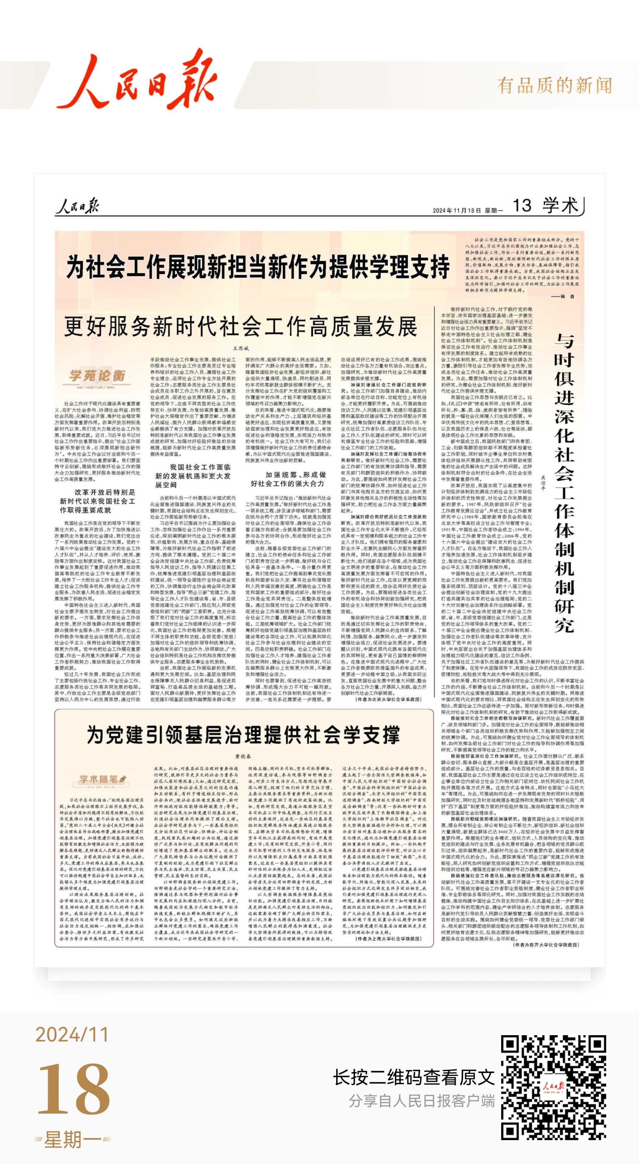 习近平总书记指出:“纵观各国治理实践,如果社会治理跟不上经济发展步伐,各种社会矛盾和问题得不到有效解决,不仅经济发展难以为继,整个社会也可能陷入动荡。”党的二十届三中全会《决定》对健全社会治理体系作出战略部署,提出加强党建引领基层治理。加强党建引领基层治理不仅能够有效激发和增强社会活力,也能够为破解各类难题、更好满足人民群众新期待提供重要支撑。当前我国社会日益开放、流动、多元,党建工作的难点在基层,亮点也在基层。深化对党建引领基层治理的研究,不仅可以推动构建中国社会学自主知识体系,也能够从多个维度为加强党建引领基层治理提供学理支撑。