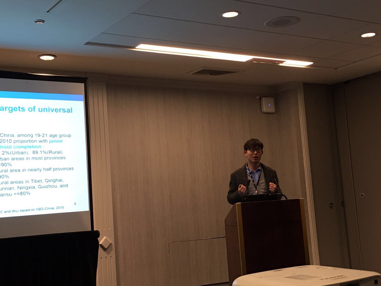 此次美国人口学年会收到来自世界各地的几千份论文,但是只有少量论文能够被接受,在被接受的论文中只有一半左右的论文能够获得口头展示机会。我院14级研究生吴颖机同Samir教授合作的论文 "Challenges to Meeting the SDG Targets of Universal Upper Secondary Education in China" 被2017年美国人口学年会 "Sustainable Development Goals and Demography" 分论坛接收并获得口头展示机会。这也是我院研究生首次获得此类世界人口学界顶级学术会议展示机会。