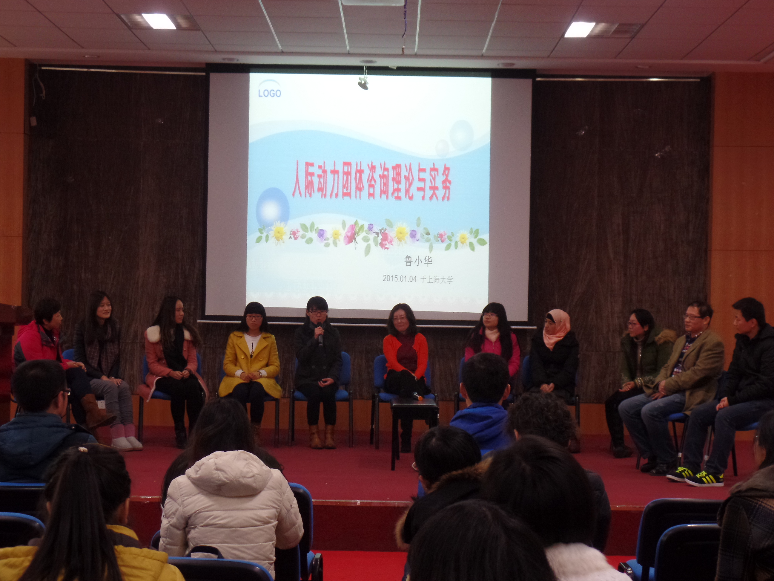 2015年1月4日上午,北京交通大学心理咨询中心副主任鲁小华博士在宝山校区南区食堂3楼308会议室进行了"人际动力团体模式"工作坊,工作坊由ok138cn太阳集团古天乐程明明博士主持,院党总支副书记陈然博士、社会工作系主任范明林教授、社会工作系师生、我校心理咨询中心老师及相关院系的辅导员老师近60人共同参与了此次工作坊。