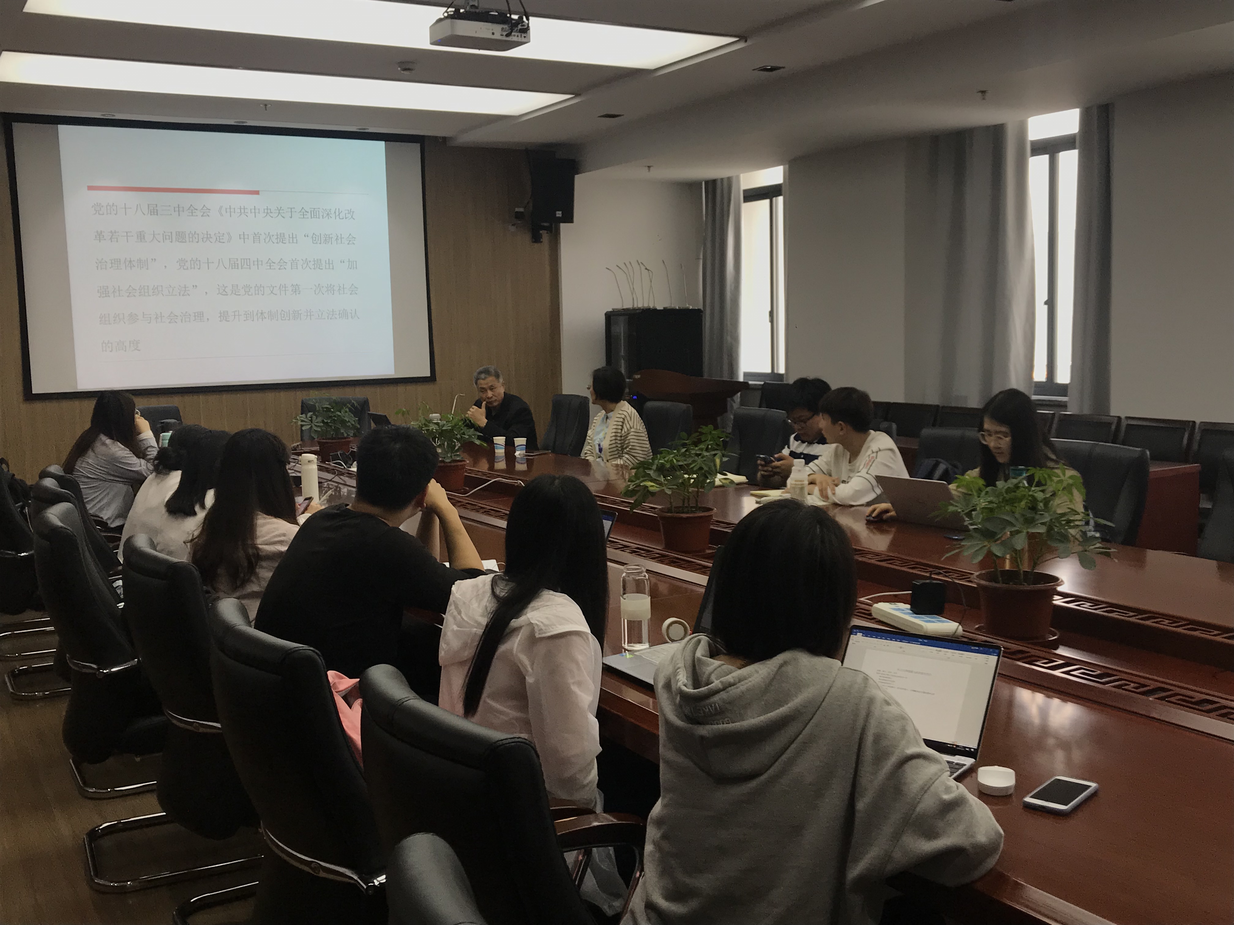 2019年5月10日,苏州大学地方政府研究所所长沈荣华教授受邀在ok138cn太阳集团古天乐作了一场题为"社会治理跨越与政府服务契合"的讲座。本次讲座由ok138cn太阳集团古天乐沈瑞英教授主持,ok138cn太阳集团古天乐行政管理专业硕士研究生,社会学、社会工作本科生到场聆听。