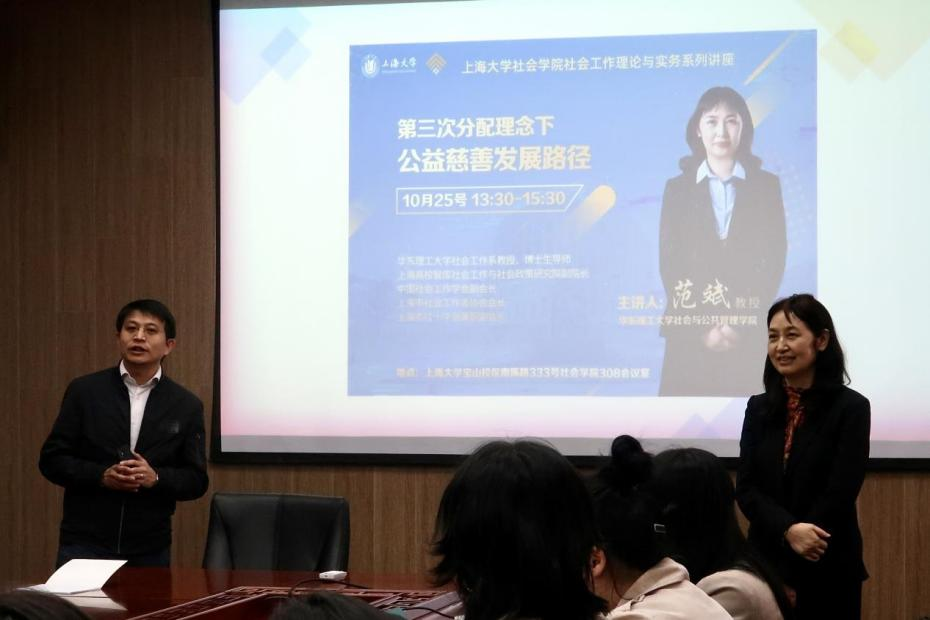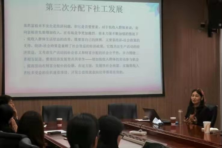 2021年10月25日下午,社会工作理论与实务系列讲座——“第三次分配理念下公益慈善发展路径”在308会议室顺利举行。本次讲座诚邀华东理工大学社会工作系范斌教授主讲,由杨锃副院长主持,社工系的师生参与探讨学习。