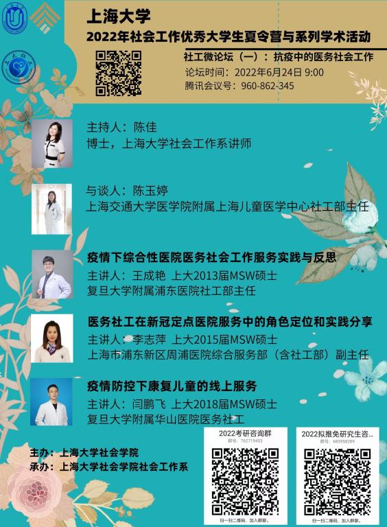 2022年ok138cn太阳集团社会工作优秀大学生夏令营与系列学术活动(社工微论坛一)