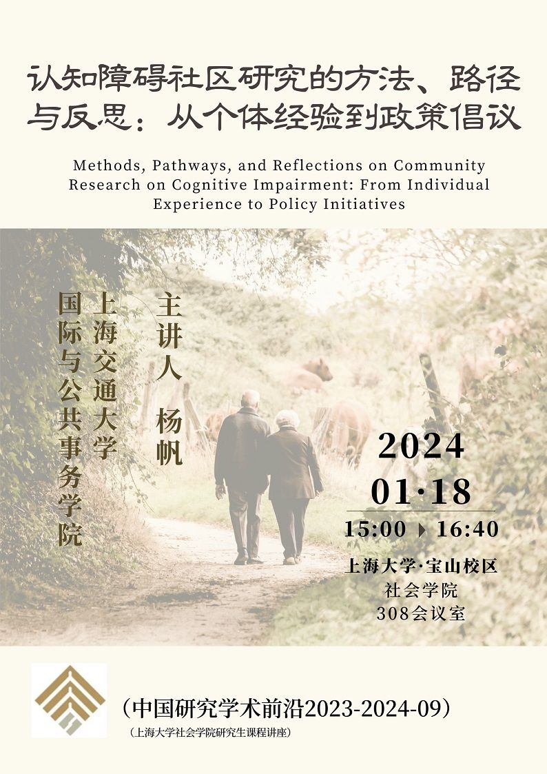 题目:认知障碍社区研究的方法、路径与反思:从个体经验到政策倡议