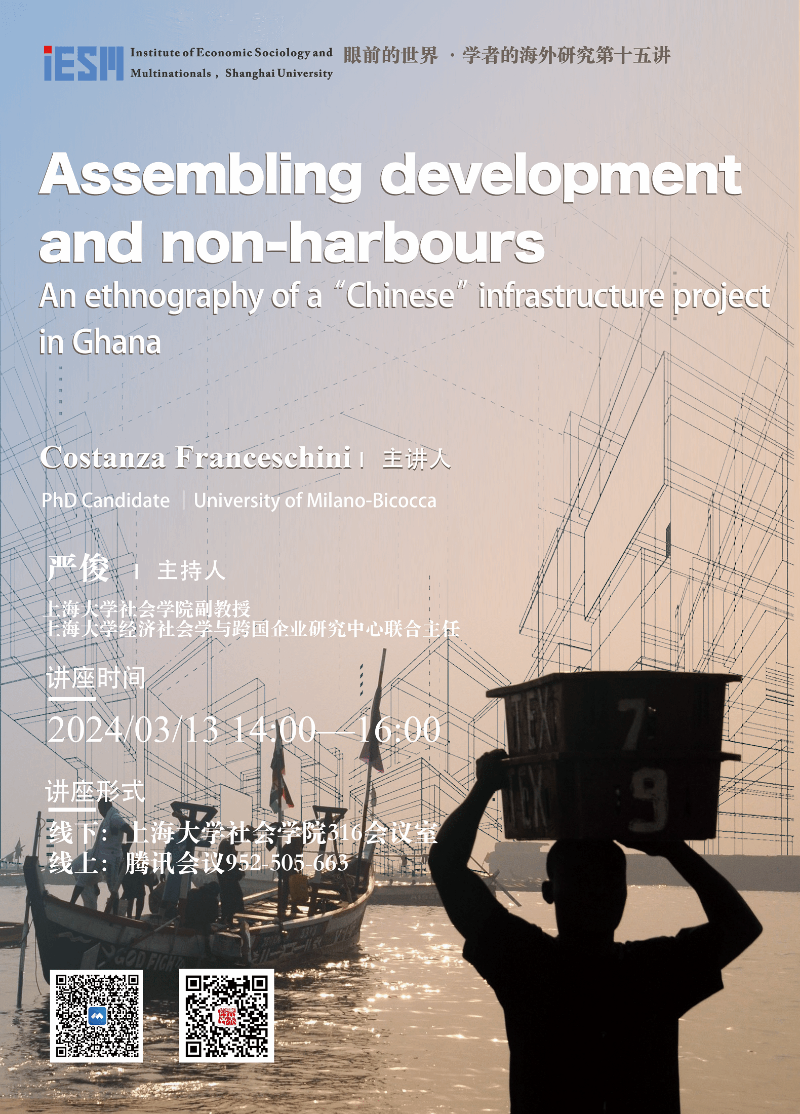 内容简介:Drawing on thirteen months of fieldwork research, the presentation illustrates the multiple actors, interests, dynamics, and (power) relations that shape contemporary Chinese construction projects in Ghana. In particular, it presents the case of the implementation of a Chinese-funded and -built infrastructure project between July 2019 and December 2022, which involved the construction of fishing harbours and landing sites in twelve local communities along the Ghanaian coast and discusses the questions of “Chineseness” and “dilution of Chineseness” of contemporary Chinese infrastructure development cooperation projects and their global assemblages.
