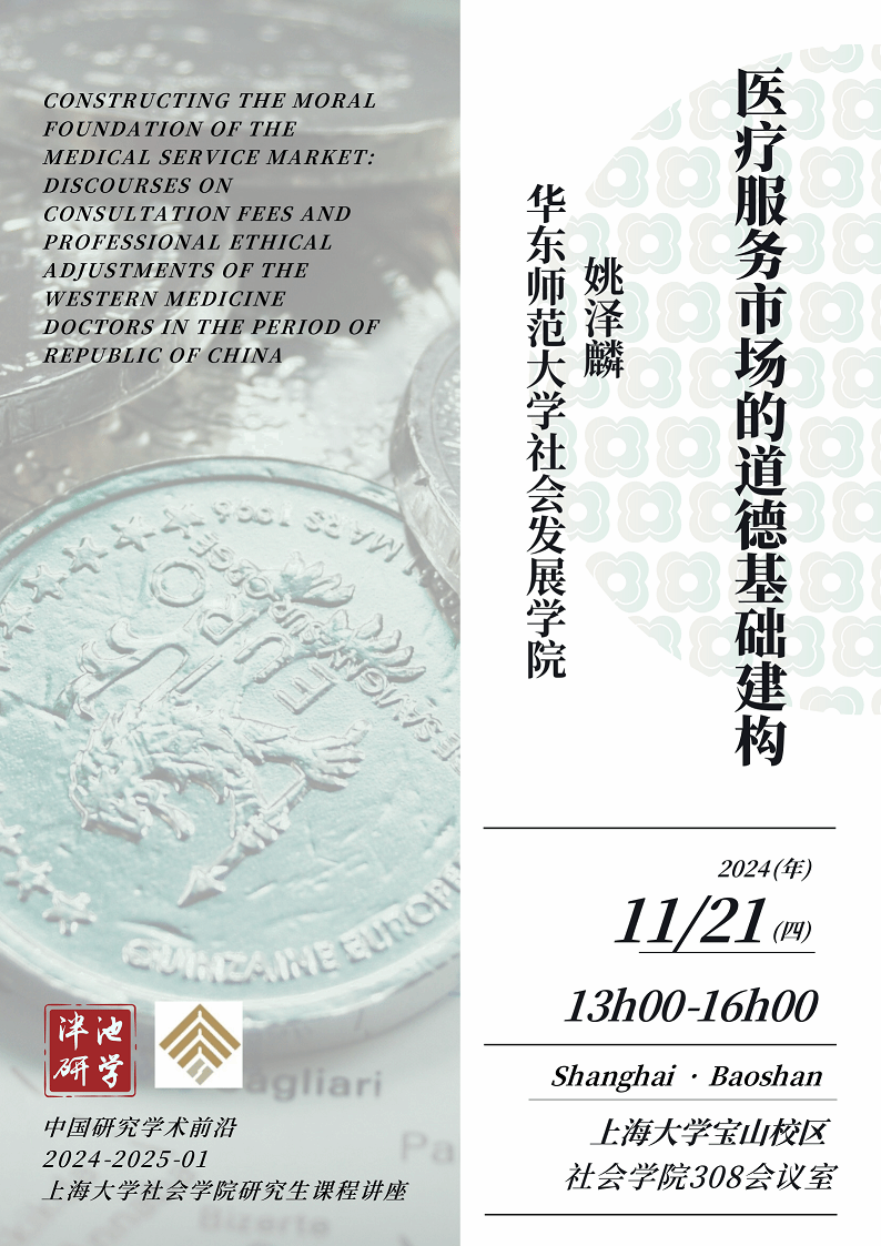 主讲人:姚泽麟,2012年获香港大学哲学博士学位(社会学专业)。现为华东师范大学社会发展学院副教授,副院长。研究兴趣包括医学社会学、职业社会学、文化社会学等。主持多项国家级与省部级课题。有十余篇论文发表于《社会学研究》、《社会》、《公共管理学报》等杂志,其中多篇被《中国社会科学文摘》、《人大复印资料》等转载。主译《道德与市场》、《金钱的社会意义》等。2017年出版的专著《在利益与道德之间:当代中国城市医生职业自主性的社会学研究》获评第四届“中国社会学会年度好书推荐”十大好书,并获上海市第十四届哲学社会科学优秀成果学科学术奖著作类二等奖。