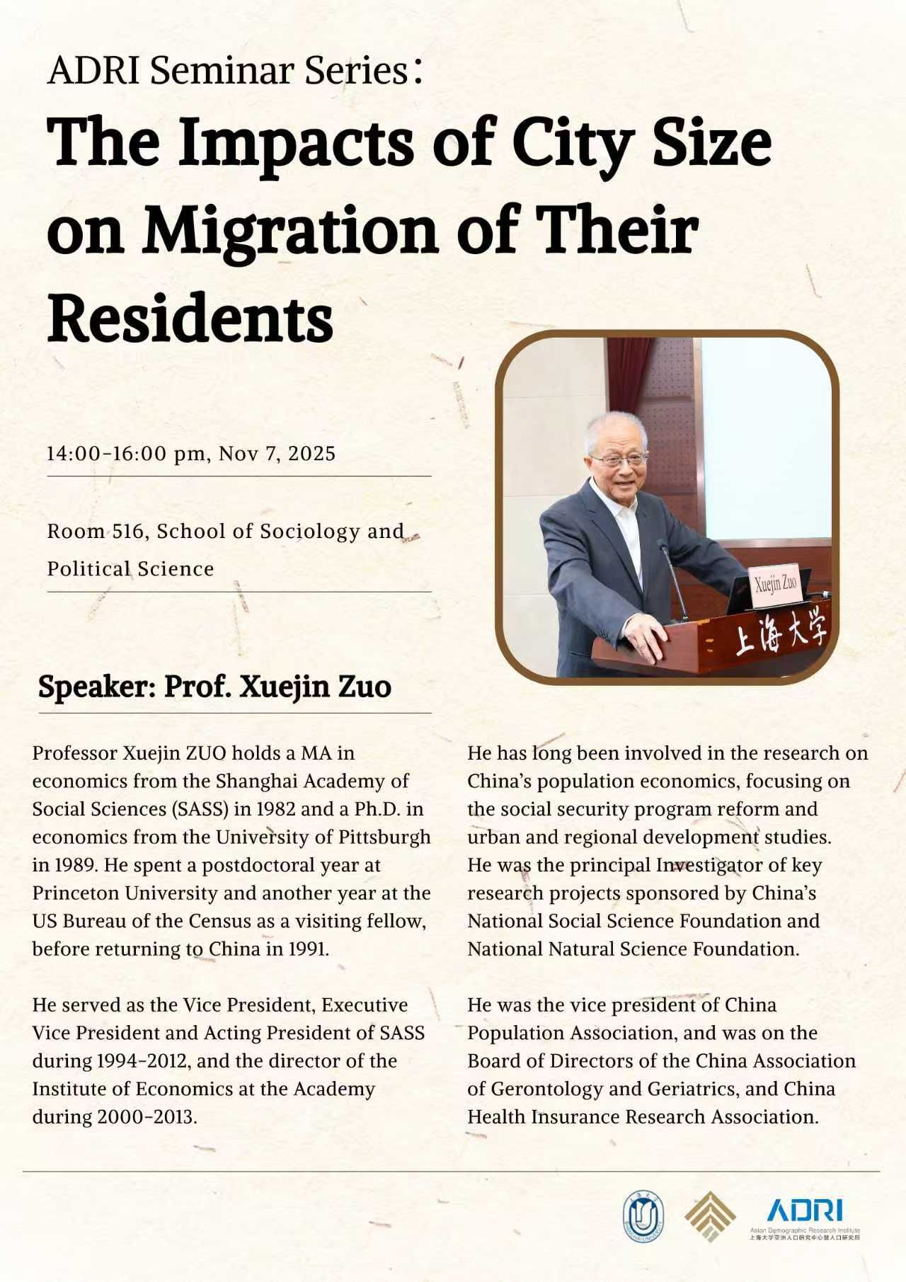 ADRI系列讲座2025|The Impacts of City Size on Migration of Their Residents(城市规模对居民迁移的影响)