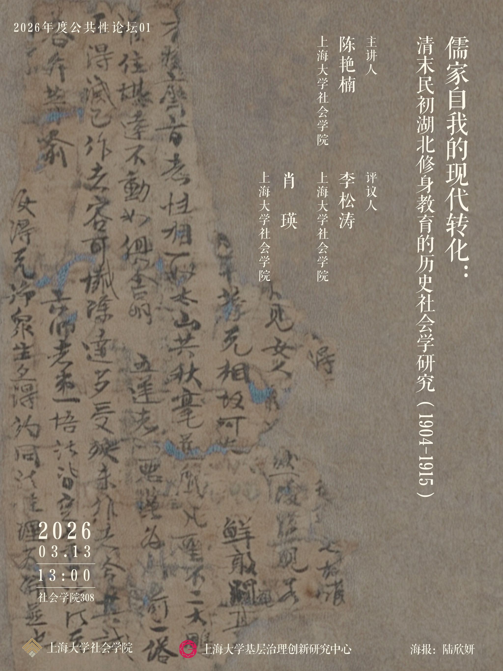 2026公共性论坛01|儒家自我的现代转化:清末民初湖北修身教育的历史社会学研究(1904-1915)