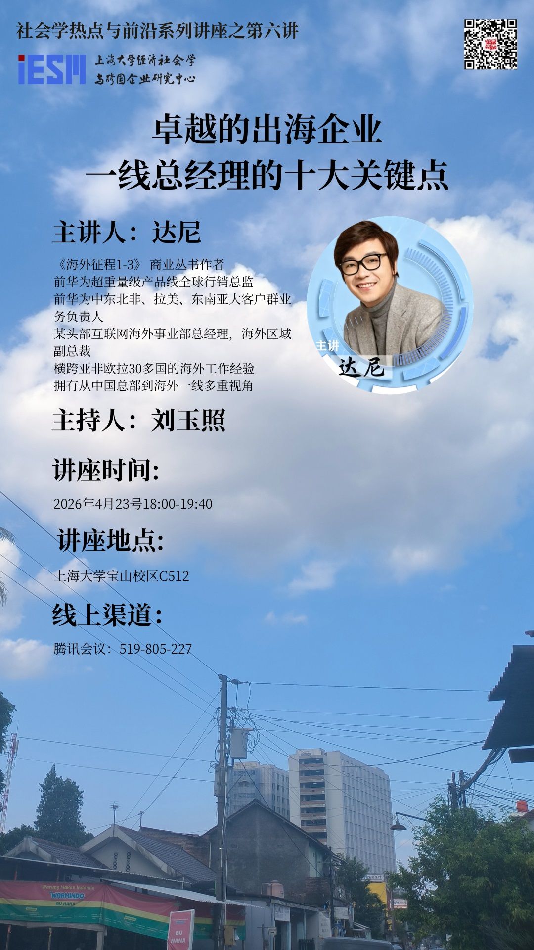 在全球化浪潮下,出海成为中国企业最热门的话题。中企“出海”已不仅是商业版图的扩张,更是一场深刻的跨文化社会互动。本次课程讲座特邀达尼,带来《卓越的出海企业一线总经理的十大关键点》主题分享。