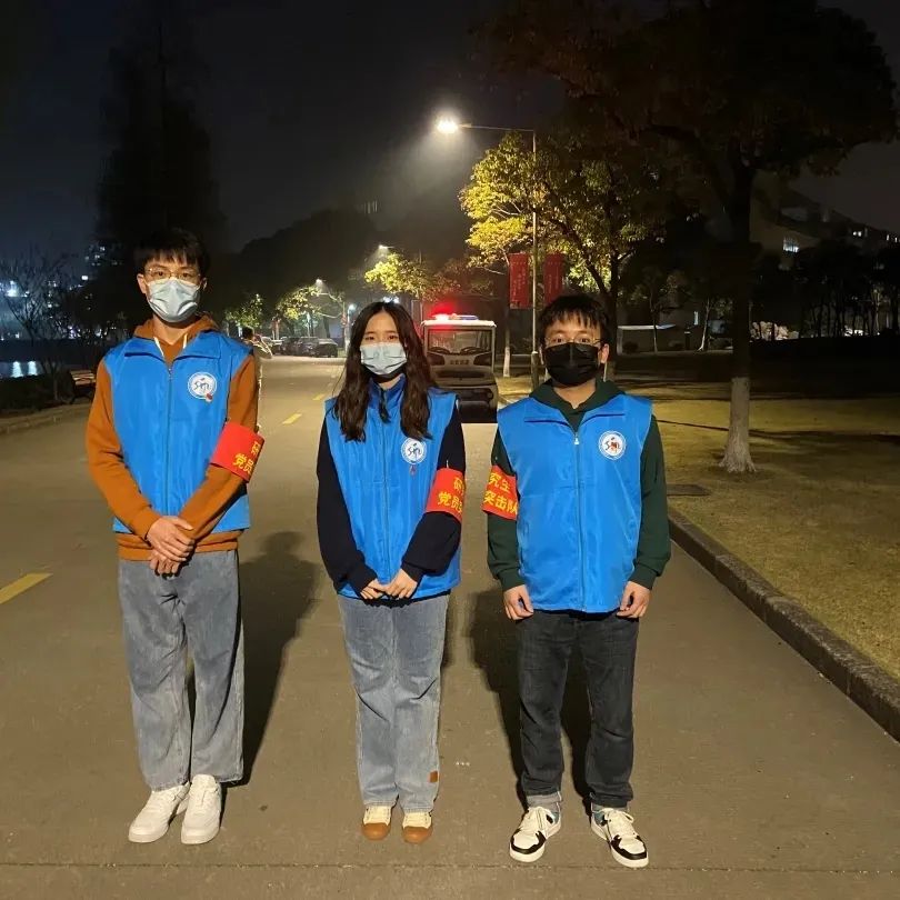 在学校实行“7+7”健康管理措施期间,应校内防疫形势需要,学校发布校内疫情防控志愿者的招募信息,秋白党支部的成员也主动申请成为疫情防控志愿者,参与网格化管理工作、宝山校区核酸检测点维持秩序、拍照摄影等。秋白党支部成员积极响应学校号召,加入研究生党员突击队,在疫情之下负责下午、夜间时段的巡查工作,杜绝扎堆和聚集。